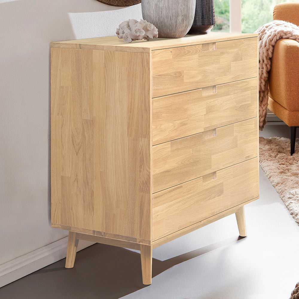 Looking for a stylish storage chest of drawers for your bedroom or hallway? The chest of drawers Escandi 1 of mid century design and thanks to its four drawers, will be your favorite place to store everything you need.