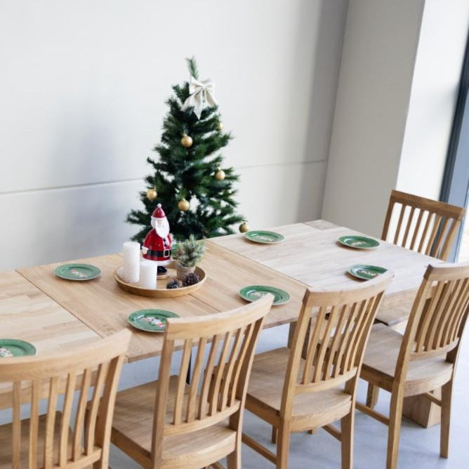 Revive your dining room with the Ontario set: solid oak extending table with 6 Provance chairs in natural color. Find elegance and functionality for your home.